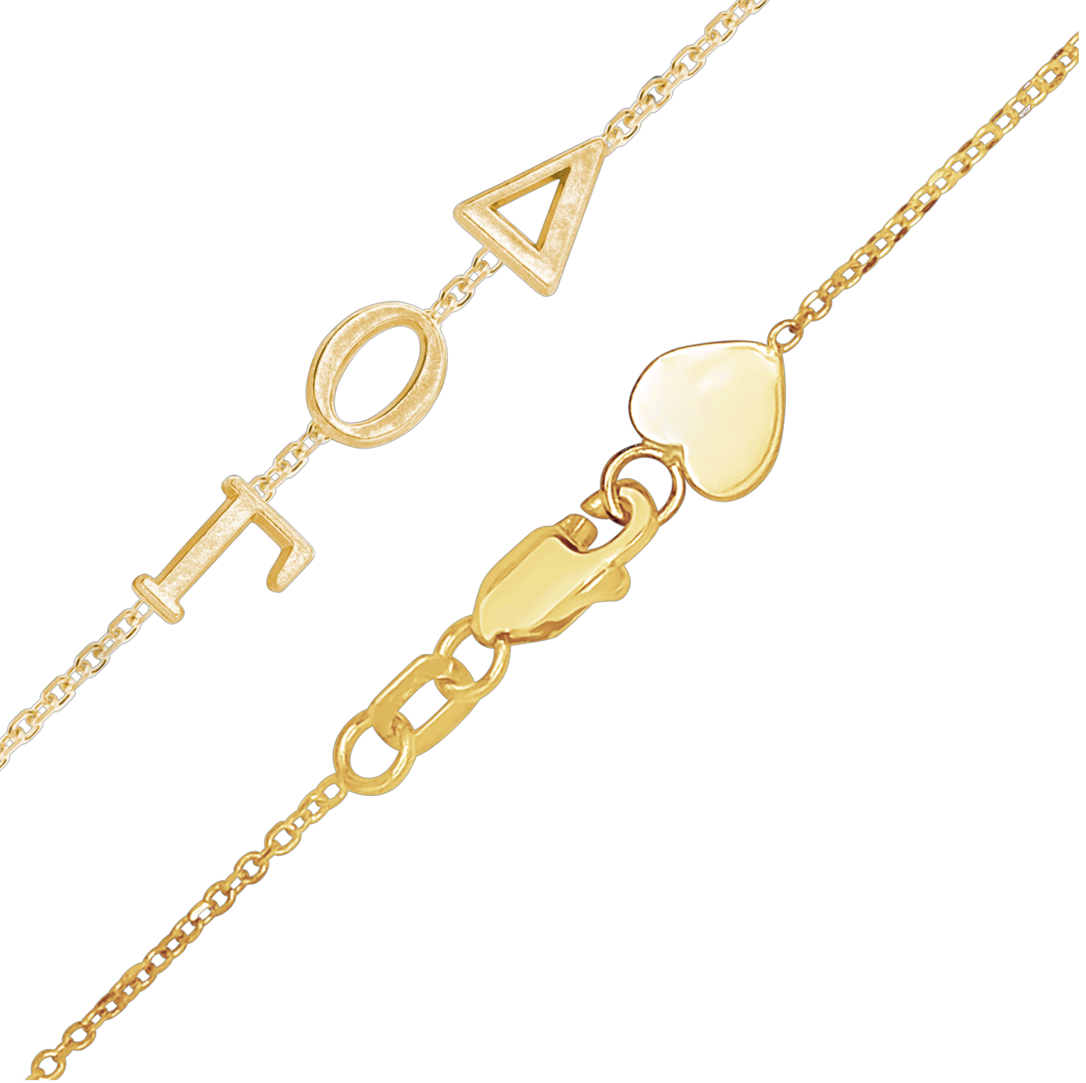 This variation of our Original Close Designs necklace lets you show off those greek letters that are important to you. It comes in 14k yellow gold and comes with the signature heart shape at the closure.
