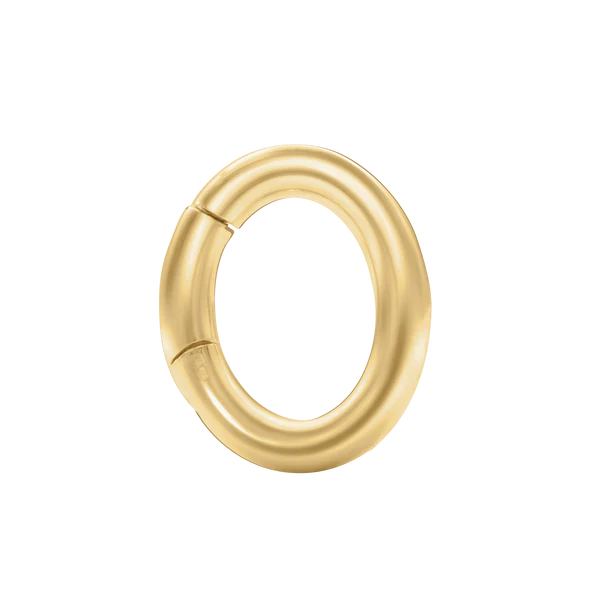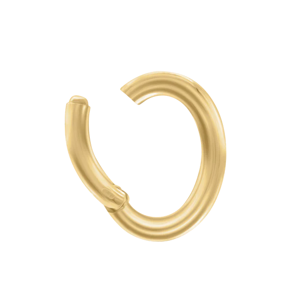 Use this 14k gold round charm holder to hold 1,2,3 or more charms. Measuring 12mm in diameter, it’s the perfect accessory to showcase your favorite charms with a modern, cool edge.